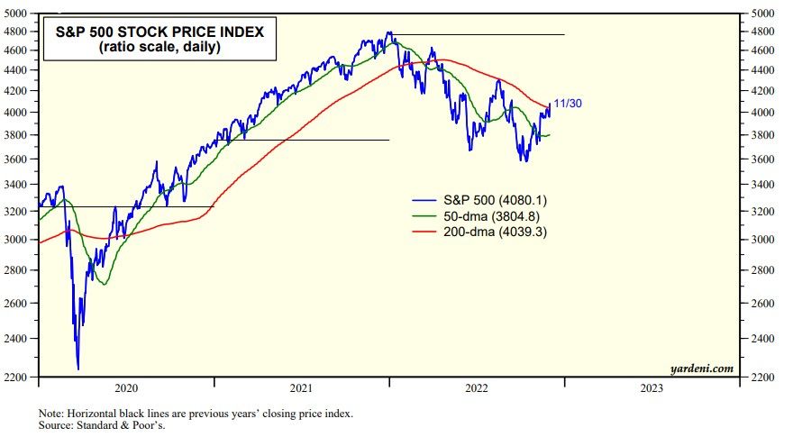 Investors seem to have concluded that inflation peaked during the summer and will continue to moderate through next year. That's been our forecast since earlier this year. They were happy to hear Powell say today that the Fed doesn't want to tighten too much if that won't be necessary to bring inflation down.