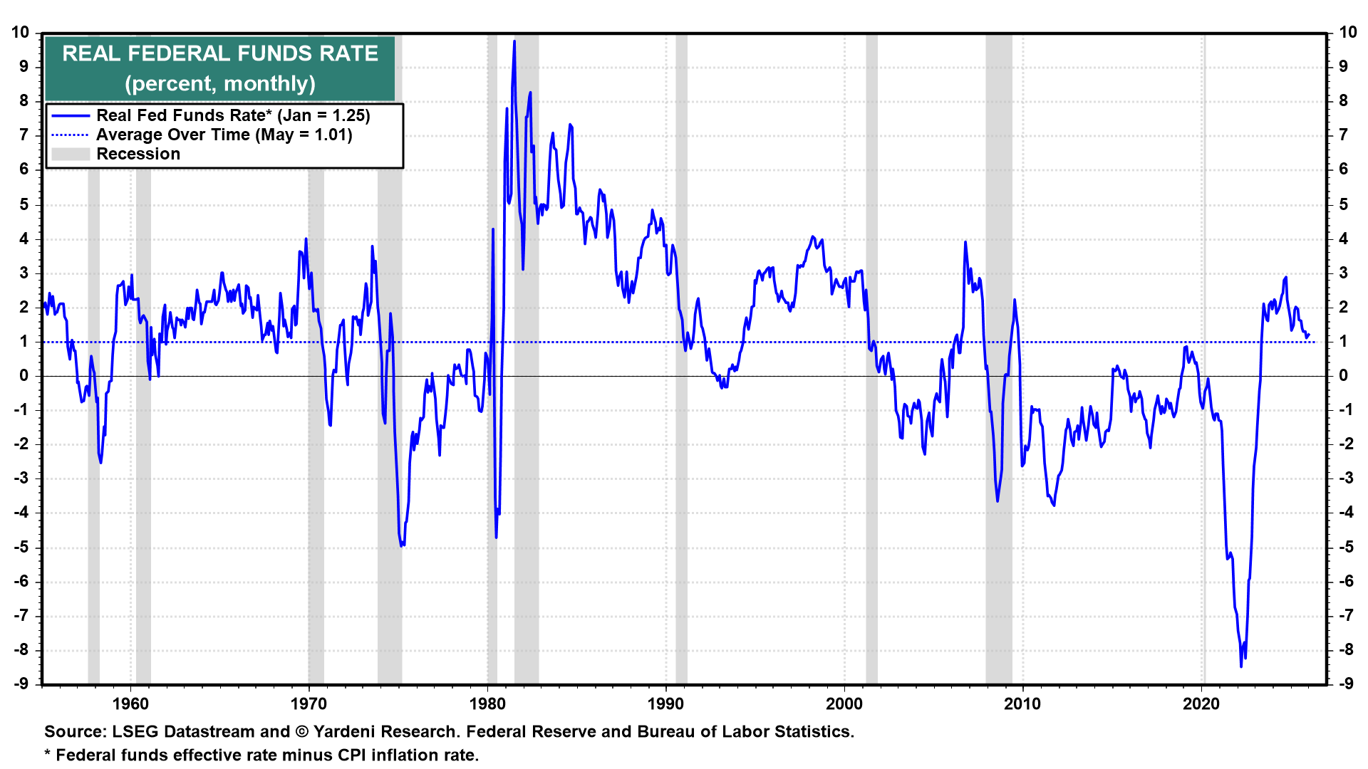 The inflation-adjusted FFR is back down to its long-term average of 1.01% (chart). There is no reason to lower this real FFR from here.