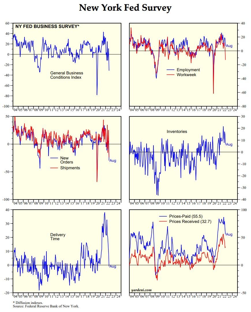 The charts below show that business activity plunged during August, according to the monthly survey of the Fed's NY district. It's a shocker. Here are the details: