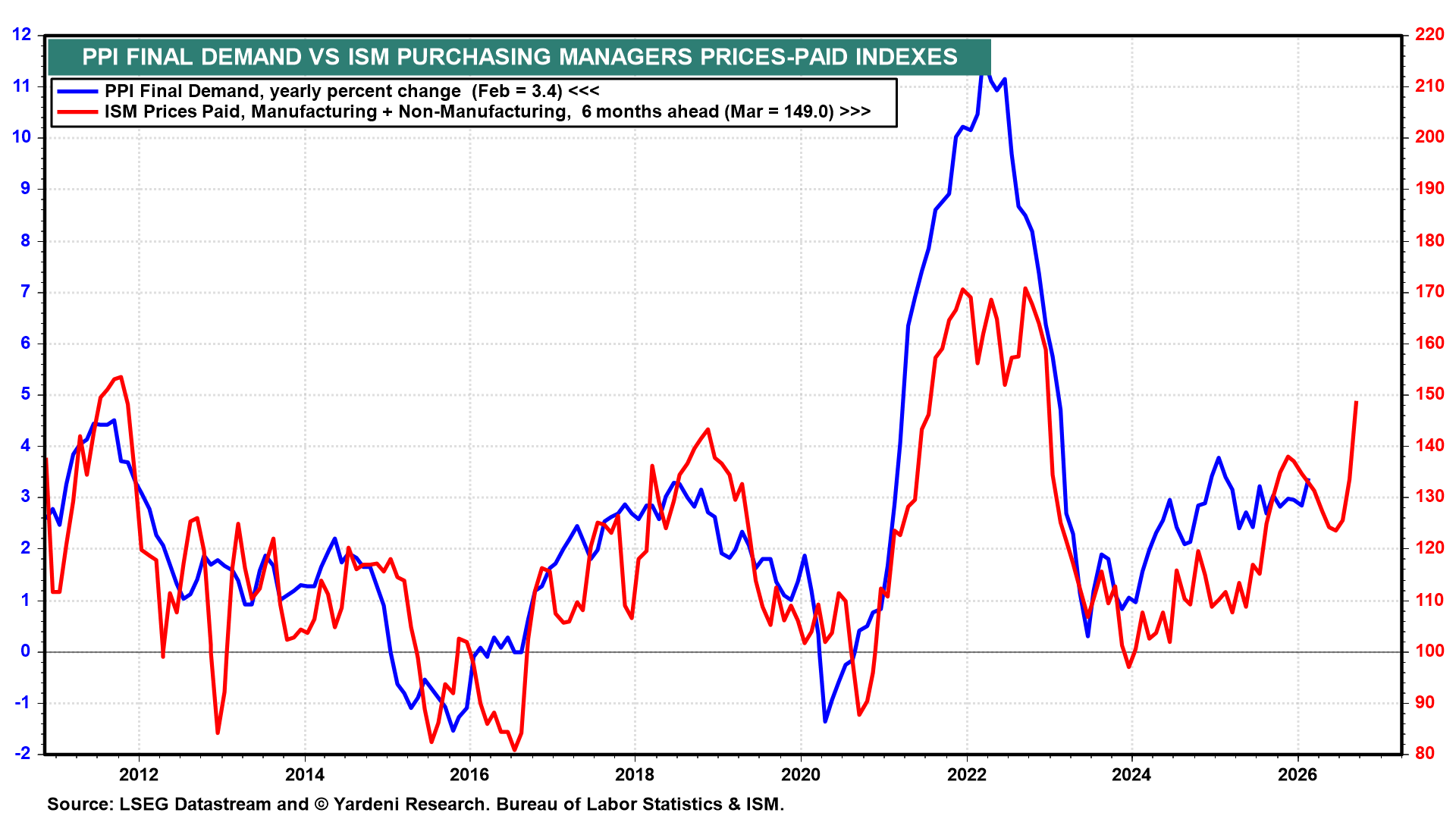 Nevertheless, we expect that one way or another, Trump will declare victory in two to three weeks. If so, then the US economy should continue to grow, with a brief period of higher inflation. That's the initial verdict of the March national Purchasing Managers Indexes for both the manufacturing (M-PMI) and non-manufacturing (NM-PMI) sectors of the economy. Consider the following: