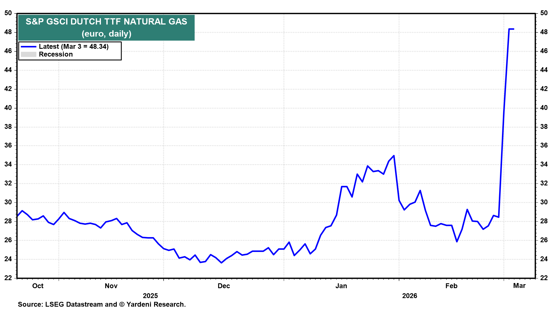 European consumers are already facing the prospect of soaring natural gas prices (chart). A similar situation, which depressed European economies, occurred after Russia invaded Ukraine in 2022.