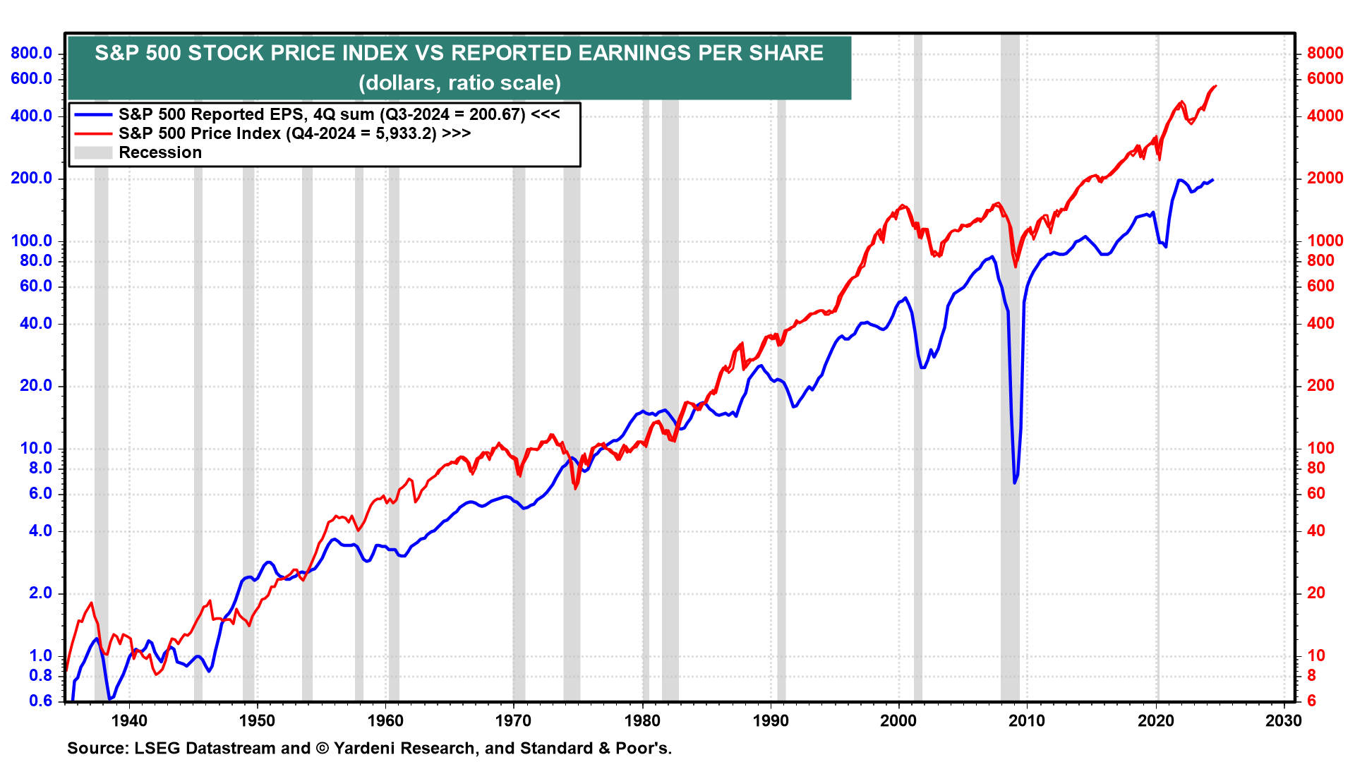 In any event, no hard feelings: I like the permabears. A few of them are my friends. They are smart economists and strategists who tend to be bearish. I look to them for a thorough analysis of what could go wrong for the economy and the stock market. They are very vocal and fuel lots of pessimism about the future among the financial press and the public. According to Microsoft CoPilot, this permabear crowd includes such luminaries as Jeremy Grantham, Marc Faber, Harry Dent, David Tice, Albert Edwards, John Hussman, Peter Schiff, Nouriel Roubini, and David Rosenberg.