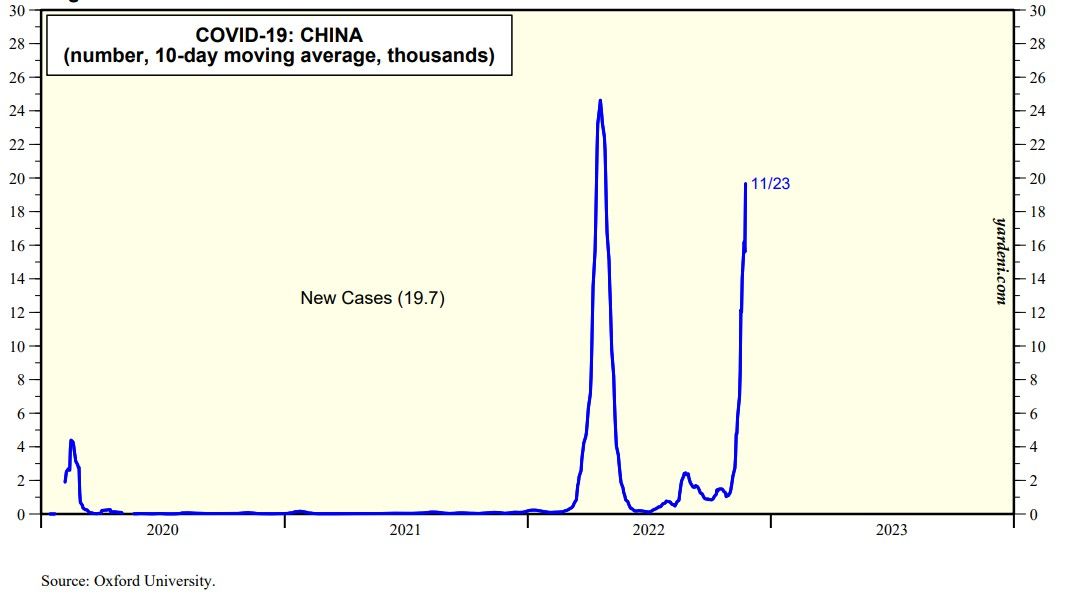 Investors are hoping that the Chinese government will soon ease its zero-Covid policies. The facts on the ground suggest that the latest wave of the pandemic is getting worse in China and that the government is continuing to respond with more lockdowns and other severe restrictions (chart). Japanese brokerage firm Nomura estimates that more than a fifth of the country is under restricted movement. This is weighing on China's economy as well as the global economy.