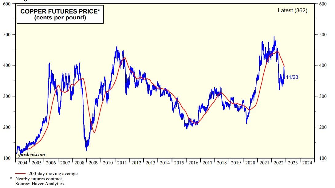 This latest wave of China's pandemic could disturb global supply chains again as did the previous wave earlier this year. That could be inflationary. On the other hand, the prices of oil and copper have fallen recently (chart). The recent rally in US bond yields may be partly attributable to the weakness in commodity prices caused by China's pandemic and economic woes.