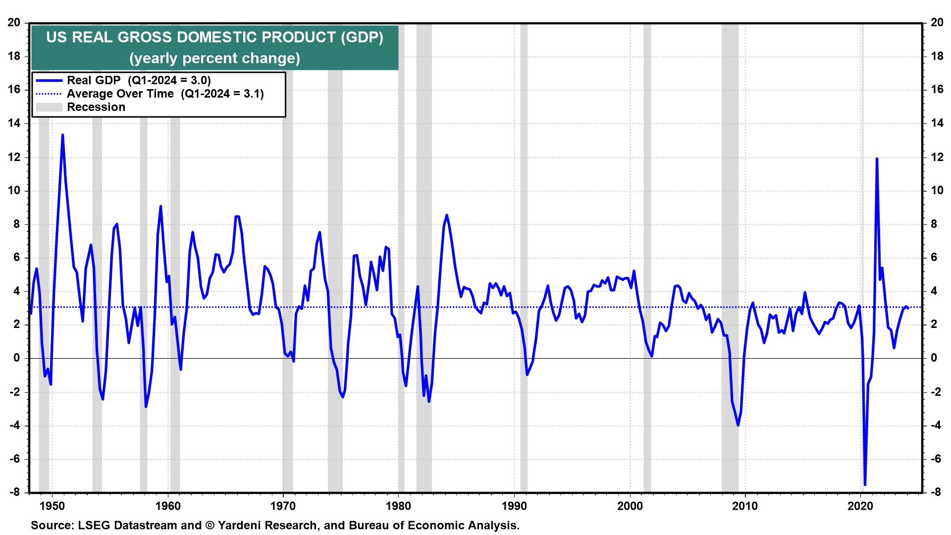(3) Inflation. The personal consumption expenditures deflator (PCED) increased 3.4% (saar) during Q1, up from 1.8% at the end of last year. Excluding food and energy prices, the PCED increased 3.7%, compared with an increase of 2.0% (chart). That spooked the bond market with the 10-year yield rising above 4.70%. The good news is that the core PCED inflation rate continued to moderate on a y/y basis to 2.9%.