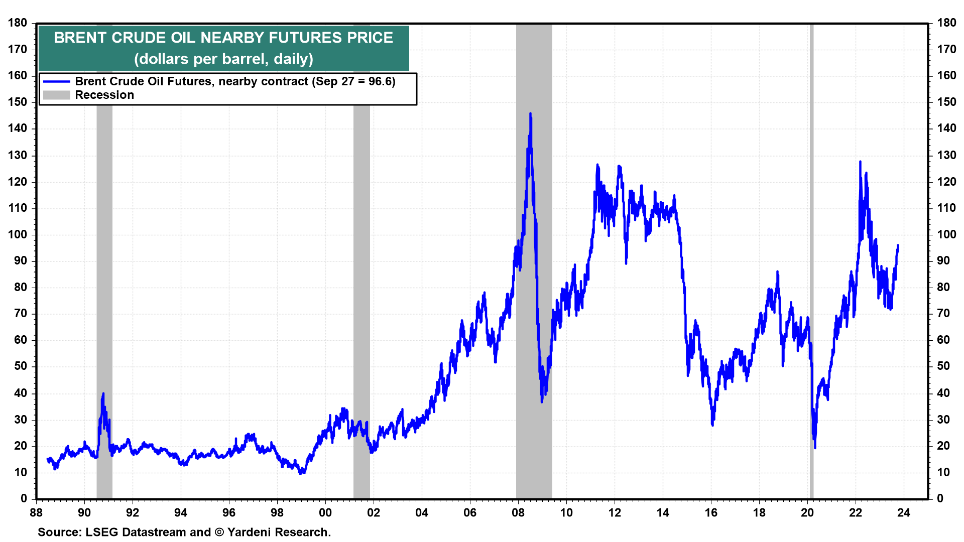 In our opinion, $100 oil will depress global demand for gasoline and other petroleum products. Indeed, it risks triggering a global recession if consumers are forced to cut back on other purchases. Another risk is that the rebound in oil prices will boost not only CPI energy prices around the world, but also put upward pressure on other prices and wages. That would force central banks to continue raising interest rates. Meanwhile, non-OPEC production should increase in response to higher oil prices. So MBS's vision of oil settling at $100 may be a desert mirage, in our opinion.
