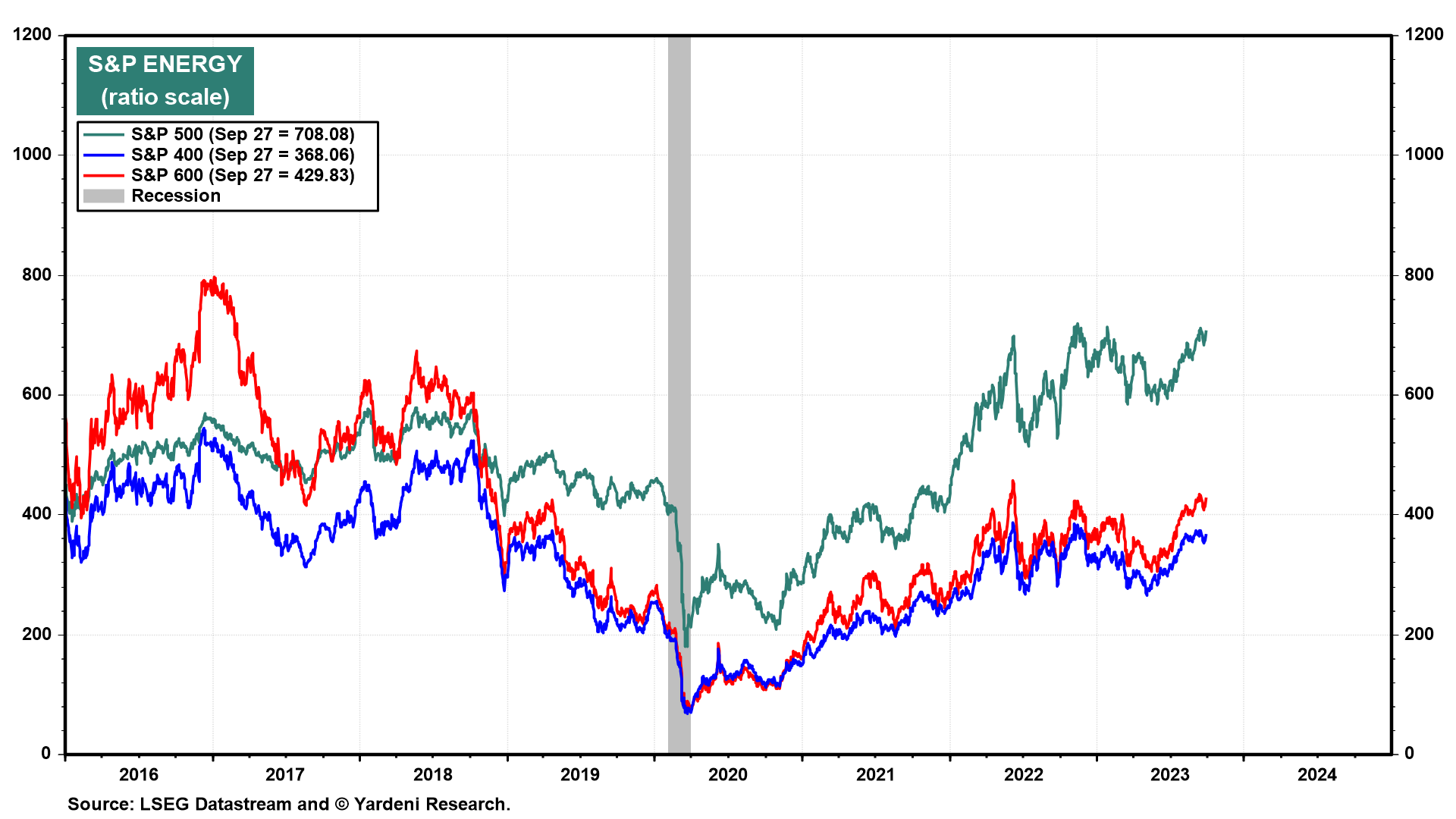 The S&P 500/400/600 Energy stock price indexes have rallied sharply since the summer, but they haven't taken out last year's highs, yet (chart). We still recommend overweighting this sector.