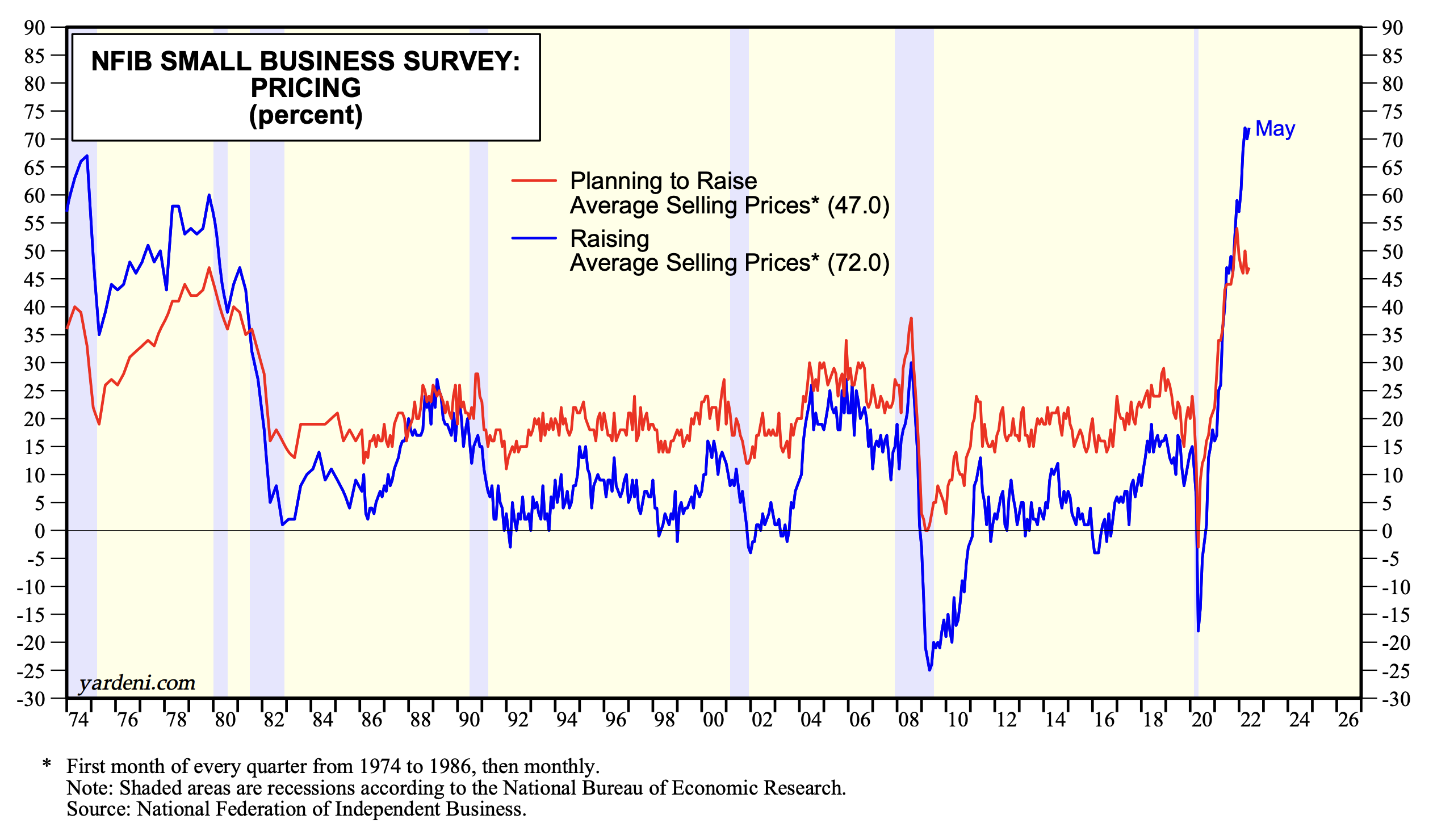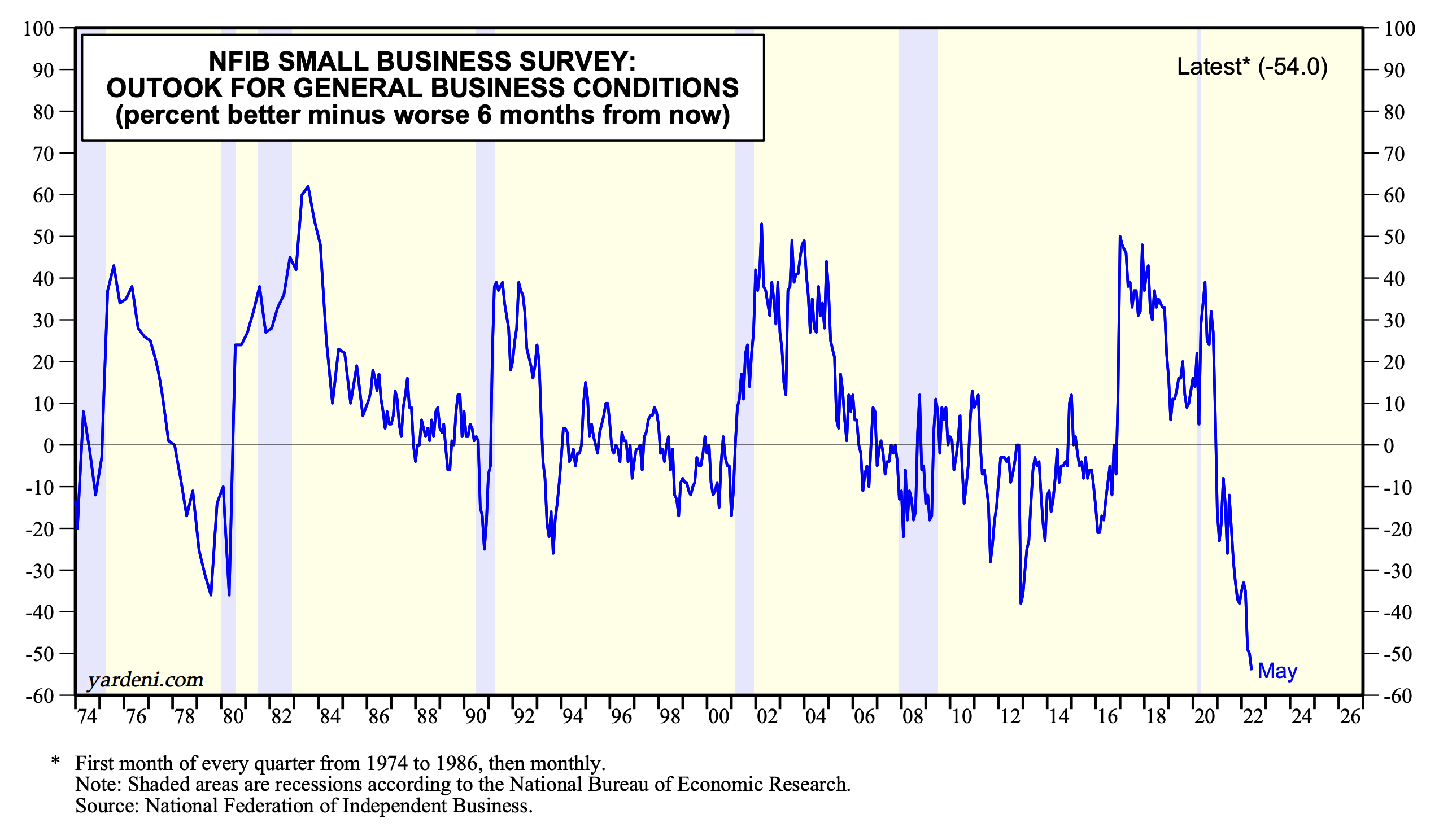 Inflation is depressing, and it is depressing everyone—including consumers, business people, and investors in stocks and bonds. For example, consider May’s survey of small business owners conducted by the National Federation of Independent Business (NFIB):