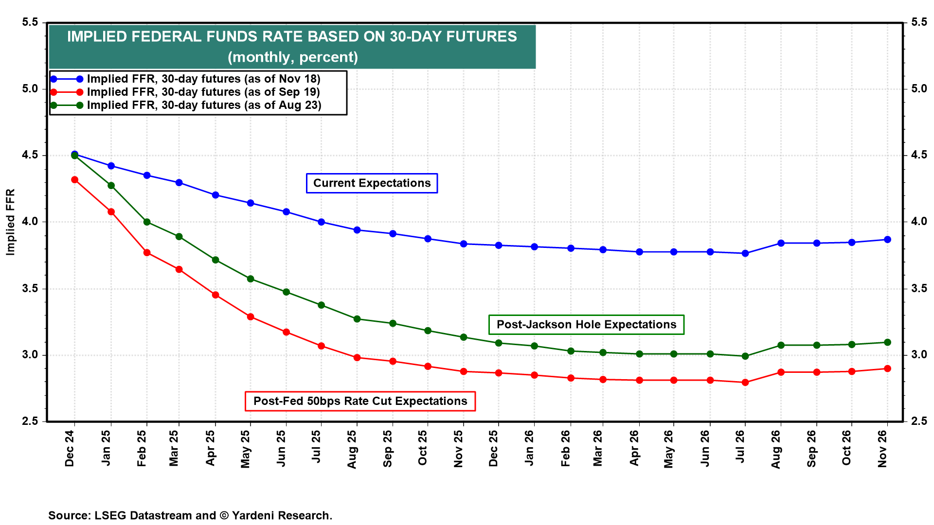 The rally in the S&P 1500 has certainly broadened in recent weeks as the Fed started to cut the federal funds rate (FFR) by 50bps on September 18 and again on November 7 by 25bps. The S&P 400 MidCaps and S&P 600 SmallCaps have been rising in record high territory in recent weeks along with the S&P 500 which has been rising in record high territory since the start of this year (chart). Lower interest rates benefit smaller companies that have floating-rate debt and don't have too many other options for raising money in the capital markets as do larger companies. Lower interest rates have also reduced concerns that the so-called "long-and-variable lags" of monetary policy will finally cause a recession.