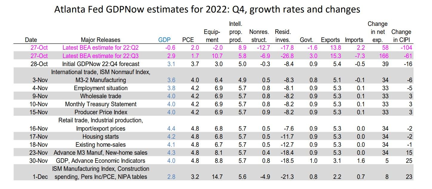 (3) Consumers spending. Unlike the lockdowns, consumers are free to spend and are doing so. October's personal income jumped 0.7% m/m and spending rose 0.8%. Both outpaced inflation. Nevertheless, the GDPNow model revised real consumer spending growth down to 3.2% from 4.8% (table). That is still strong.