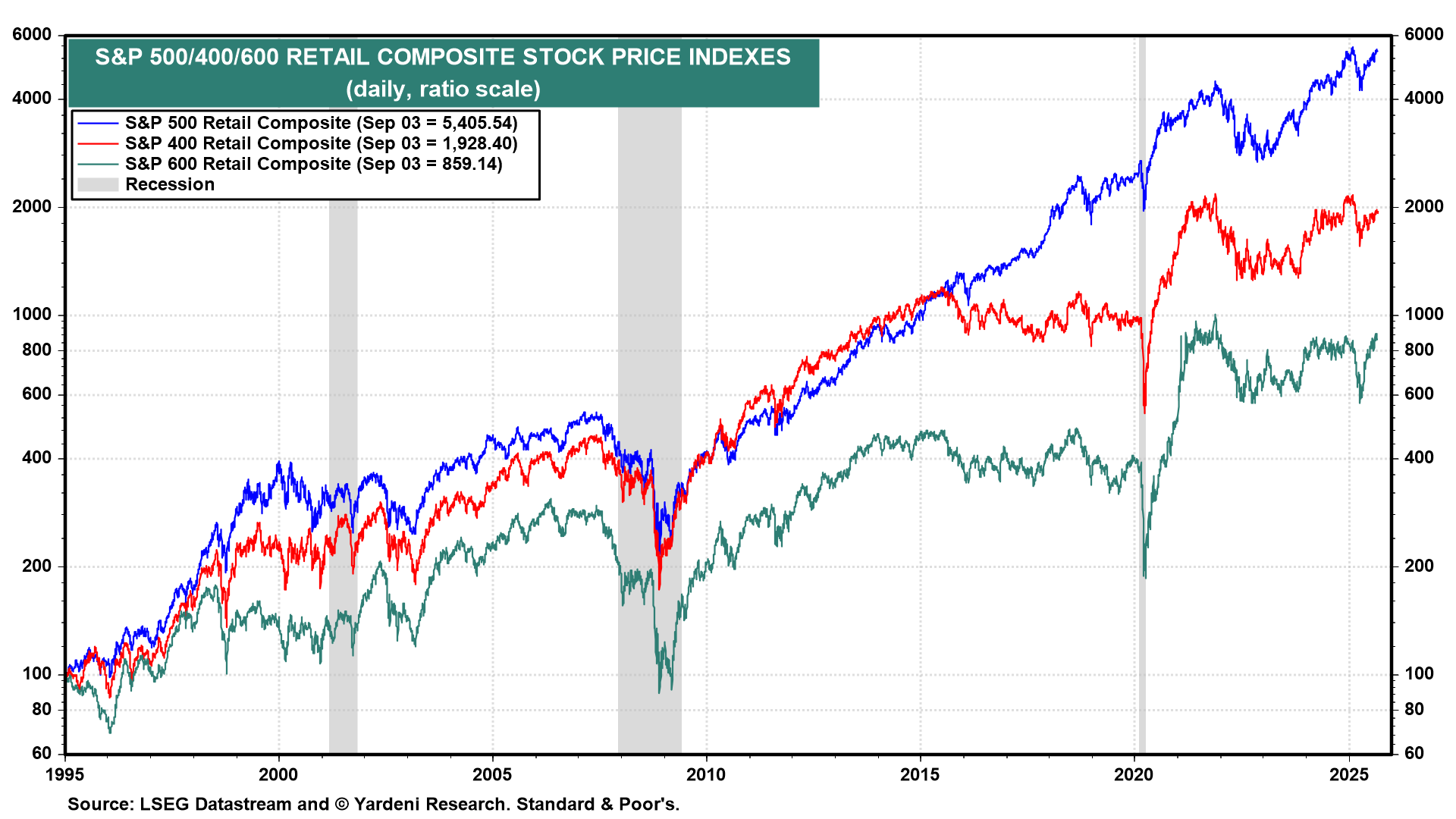 Investors agree with our upbeat view of consumers, as evidenced by the strength in the S&P 500/400/600 Retail Composite stock price indexes.