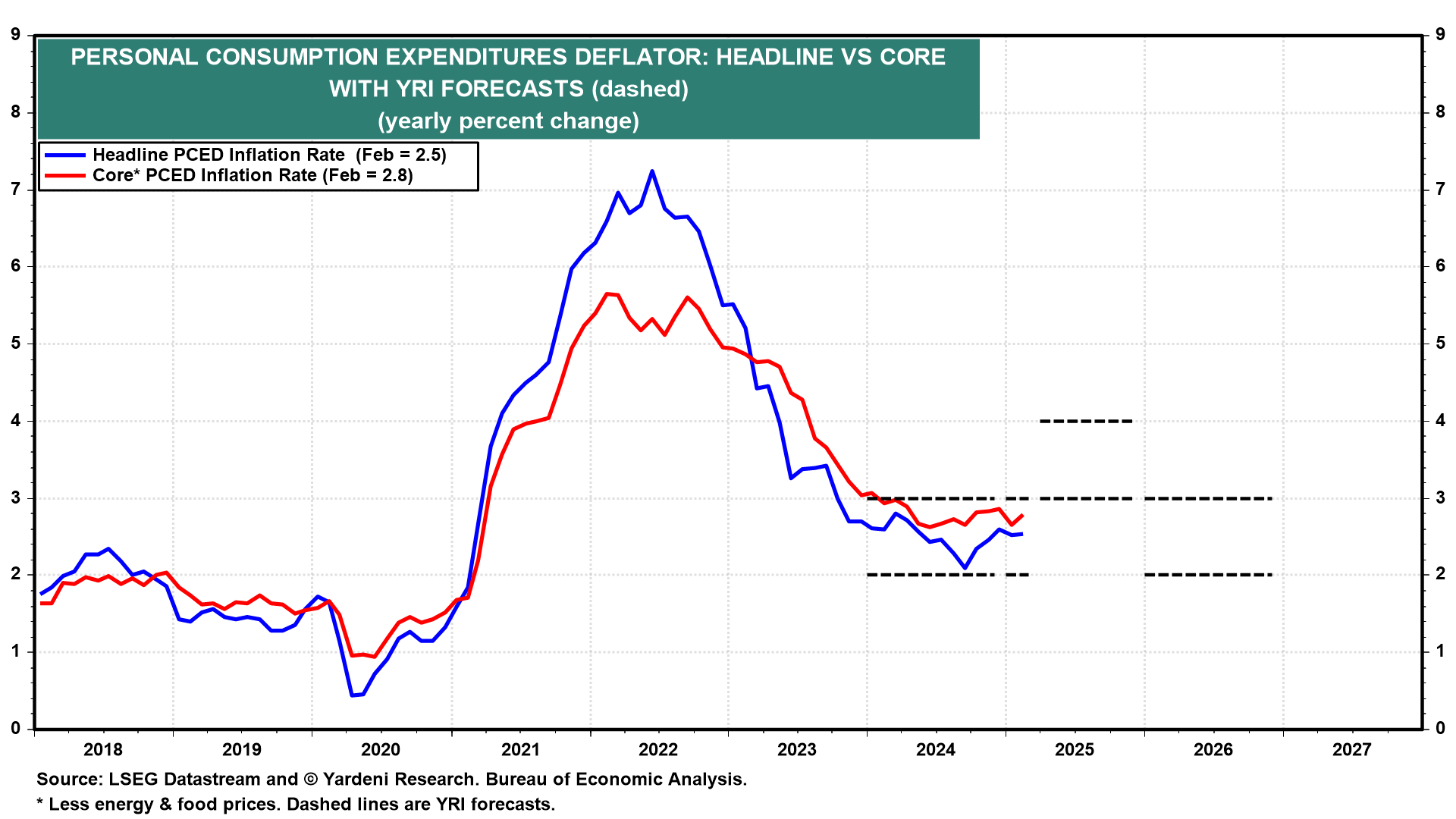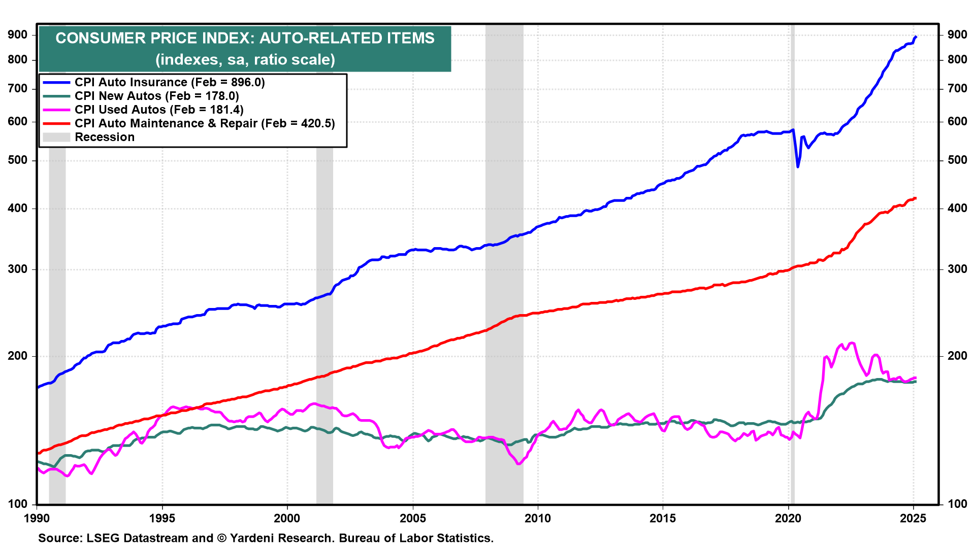 The 25% tariffs on autos, auto parts, steel, and aluminum undoubtedly will boost new as well as used auto prices as well as auto insurance, maintenance, and repair costs. That could lead to persistent inflationary pressures in the broader economy, mirroring what happened during the pandemic (chart).