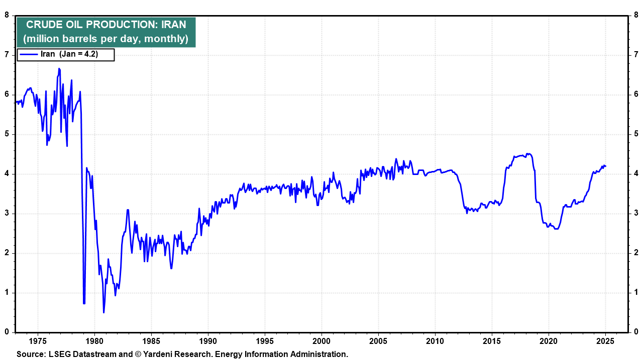 Stock investors have concluded that this war won't last much longer. Furthermore, Iran won't have nuclear weapons or missile delivery systems. And Iran won't shut the Strait of Hormuz. Moreover, there's plenty of excess oil capacity around the world to replace any reduction in Iran's oil production and exports (chart).