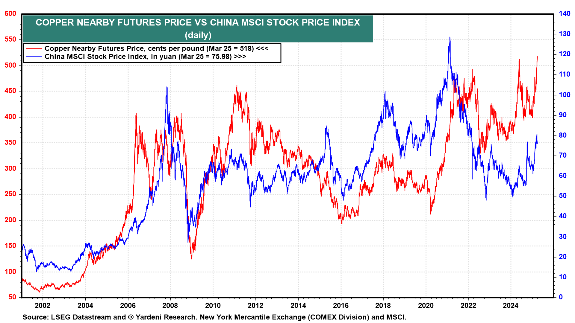 Speaking of bubbles, tariffs may be inflating them in various commodities, especially copper. Historically, copper prices have signaled strong economic growth, particularly vis-a-vis demand from China. Now copper is hitting record highs on tariff turmoil.