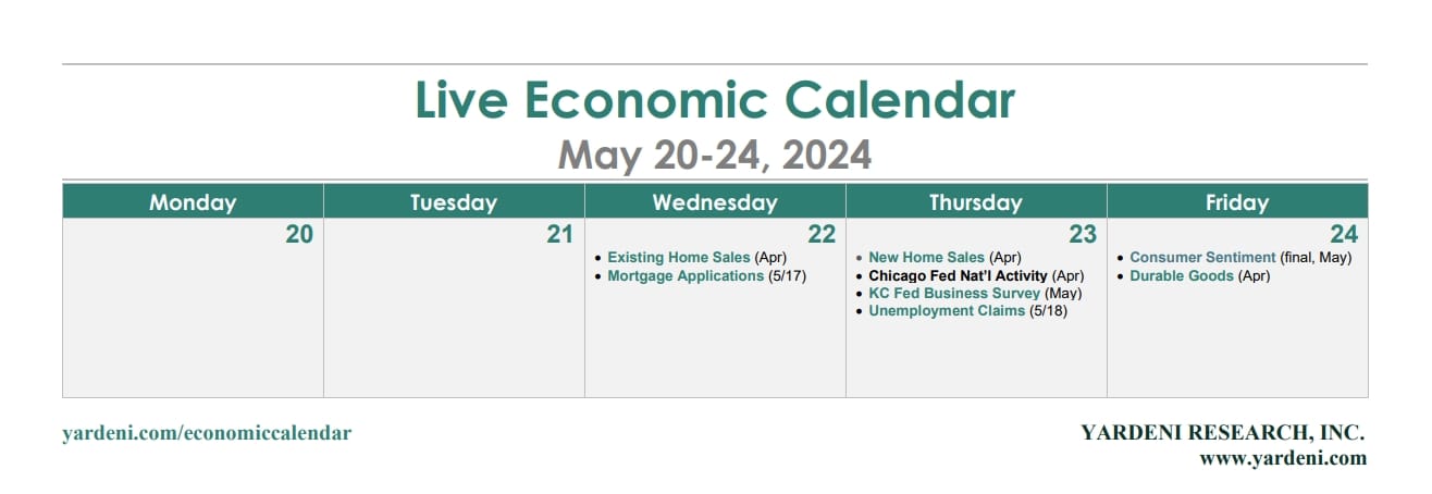 (3) Home prices. April's new single-family home prices (Thu) probably continued to edge lower as rising supply is cooling prices in hot markets like Florida and Texas (WSJ). We expect to see some moderation in April's existing home prices (Wed) for the same reason. For now, home prices are providing a significant positive wealth effect on consumer spending.