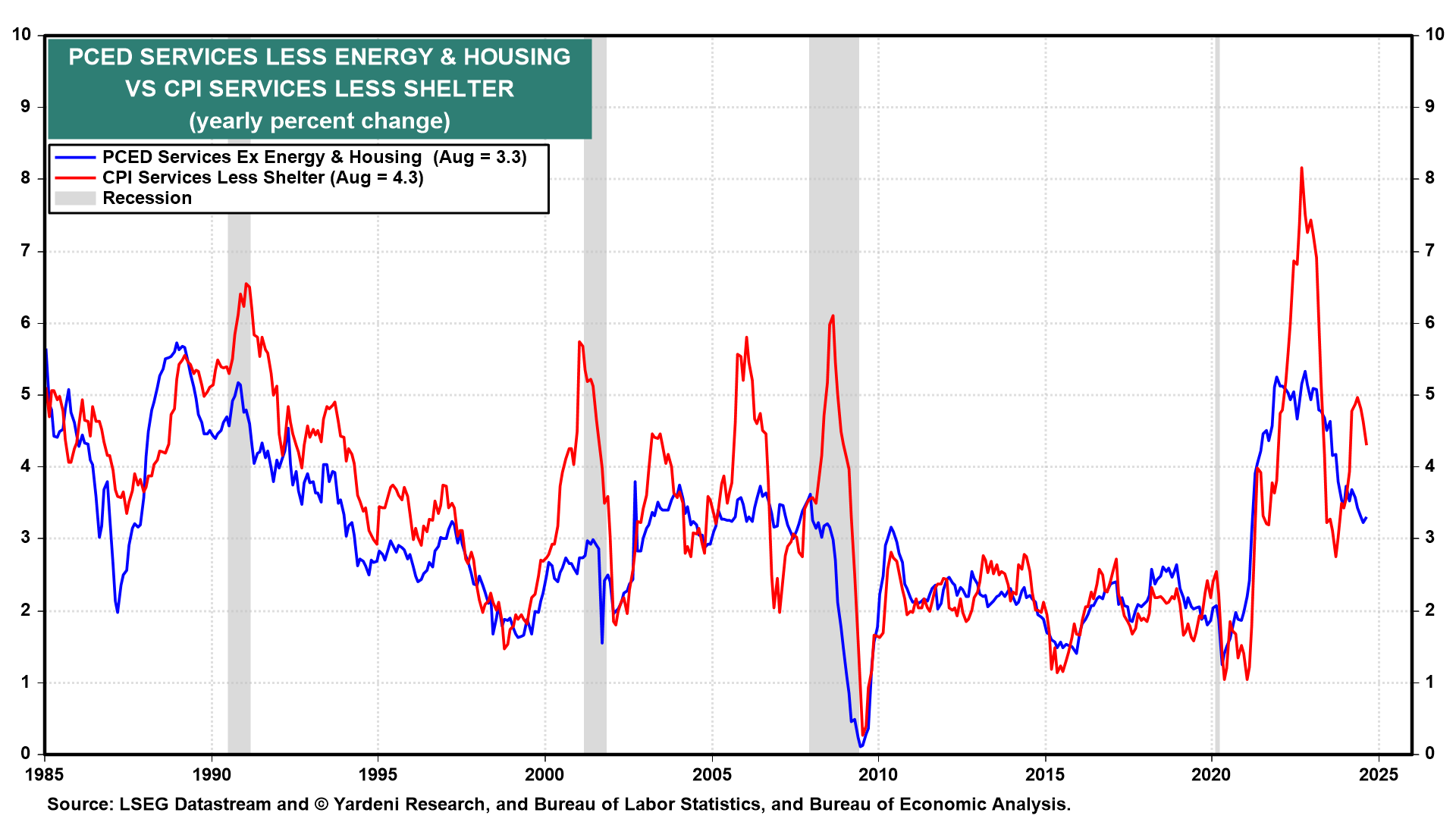 We've been disinflationists since mid-2022, expecting that inflation would fall to 2.0% without a recession. However, the Fed's "mission accomplished" 50bps-rate cut on September 18 may prove to be premature if services inflation remains sticky and goods inflation heats up.