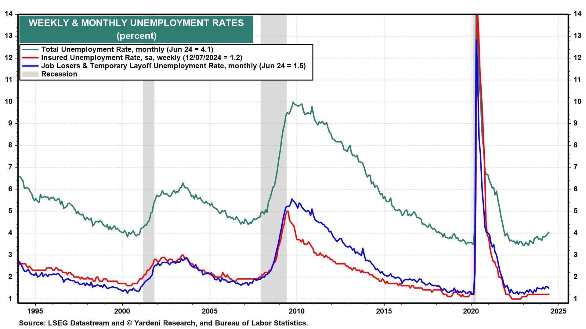 (1) Employment. July's employment report (Fri) should show payrolls rose by 150,000-200,000 to another record high. Still, there's a decent chance the unemployment rate ticked higher to 4.2% in July. We wouldn't be concerned as rising unemployment has been fueled by a growing labor force rather than job losses (chart).