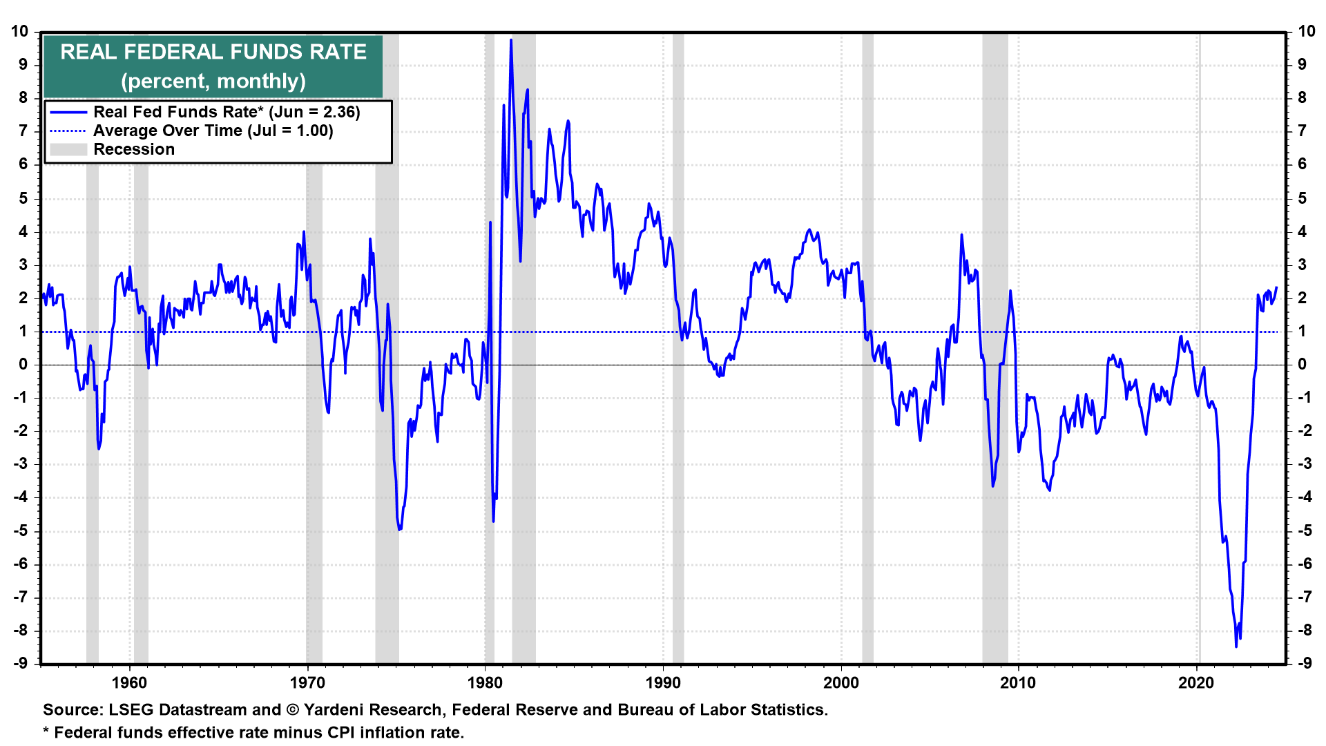 We don't subscribe to this view of measuring the restrictiveness of monetary policy, but won't ignore it since many Fed officials use it as a barometer. It's possible that the Fed holds back any signals of a policy pivot until the Jackson Hole symposium in late August. Here's what we're expecting in the week ahead:
