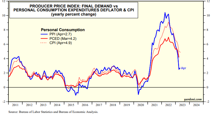 On Friday, Fed Chair Jerome Powell said that monetary policy is "restrictive." So Fed policy will be data-dependent, particularly so on inflation indicators. For those of us in the "pause" camp, he seemed to suggest that's possible. He acknowledged that the banking crisis is bound to tighten credit conditions reducing the need for the Fed to get more restrictive. That's been our position.