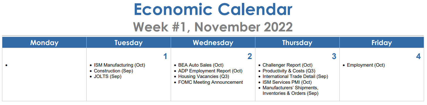 We are expecting to hear more Fed officials talking about pausing rate hiking early next year, especially if this week's major labor market indicators continue to show moderation in September's job openings (Tues.) and in October's employment and wages (Fri.).