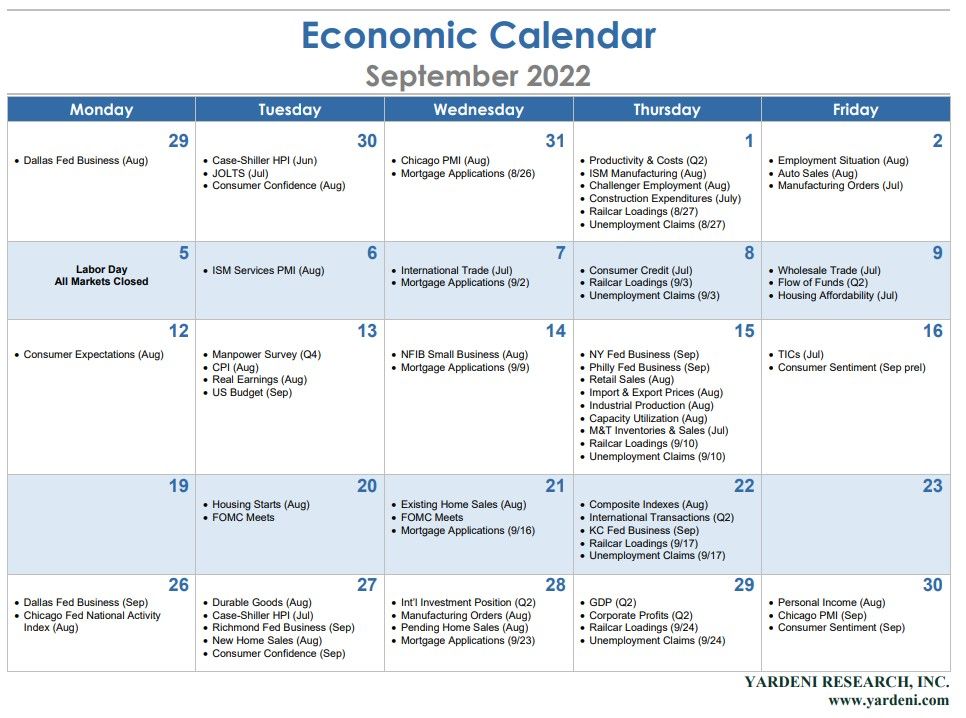 (3) Business. September's regional business surveys conducted by the Dallas Fed (Mon.) and Richmond Fed (Tue.) are likely to show weakening growth and easing inflationary pressures as did the NY, Philly, and KC surveys.