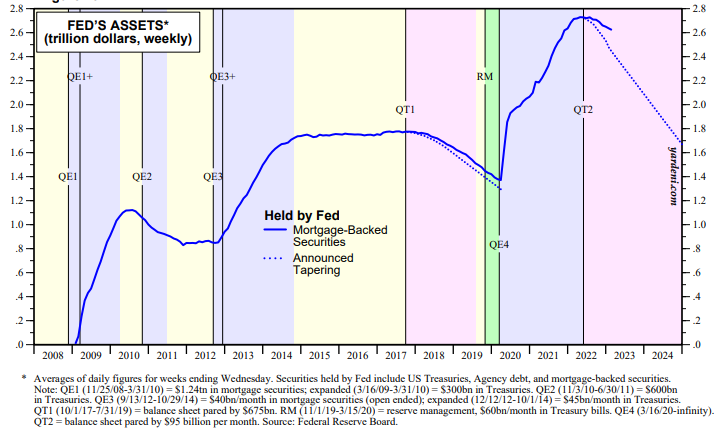 If the Fed stops raising interest rates, will it also stop it's quantitative tightening? It might have to at least stop reducing its holdings of mortgage-backed securities (chart).