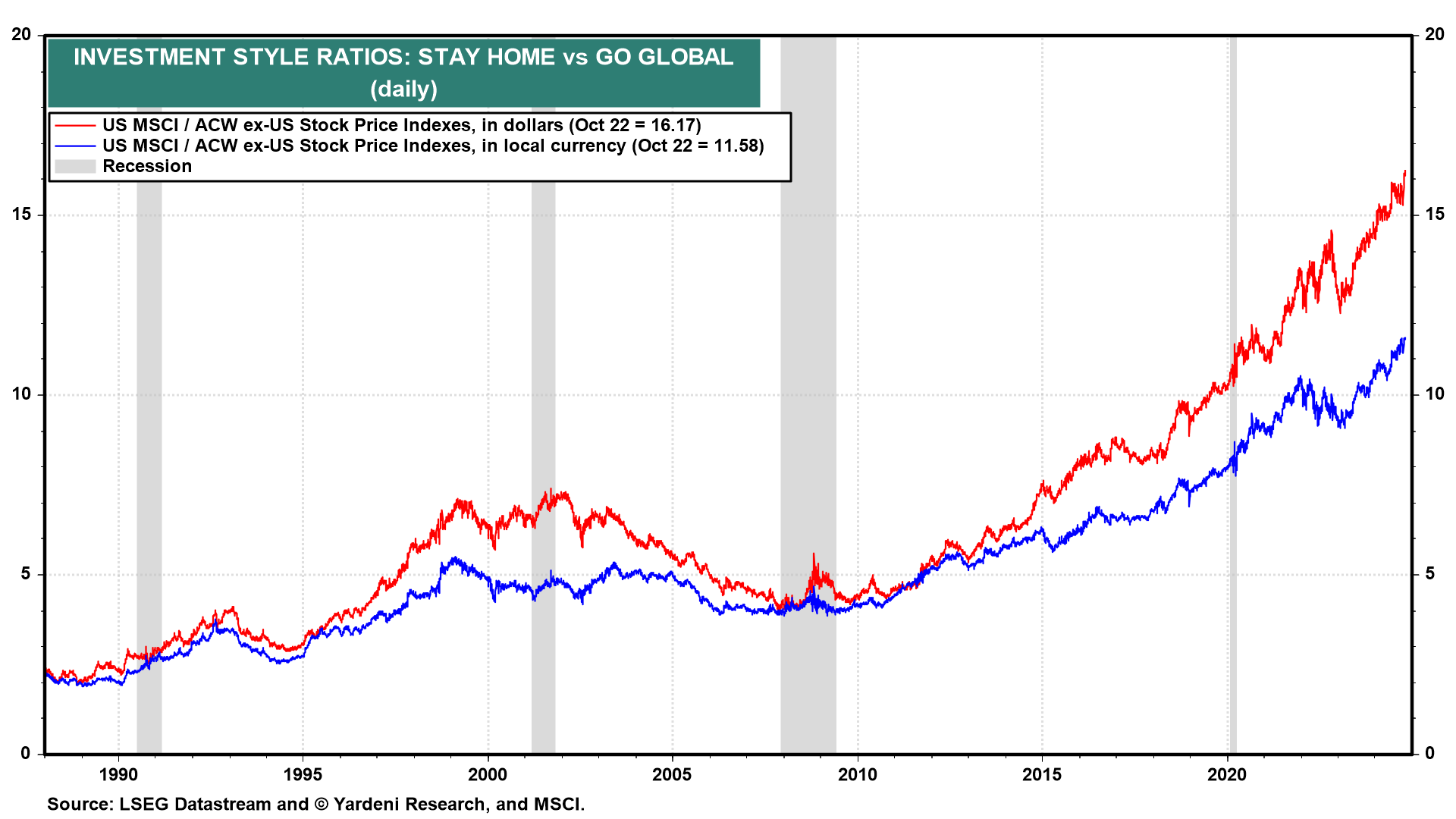 We've been recommending overweighting the US in global equity portfolios since 2010. We still are, and it is still working (chart).