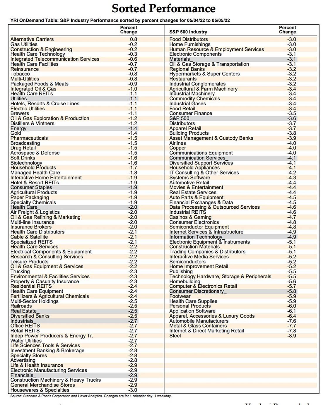 Among S&P 500 industries, here are some ytd winners that also held up well yesterday and might continue to outperform: Integrated Oil & Gas (44.0% ytd), Agricultural Products (31.7), Fertilizers & Agricultural Chemicals (31.5), Property & Casualty Insurance (10.6), Agriculture & Farm Machinery (9.4), Aerospace & Defense (5.1), Airlines (4.2), and Construction & Engineering (7.8).