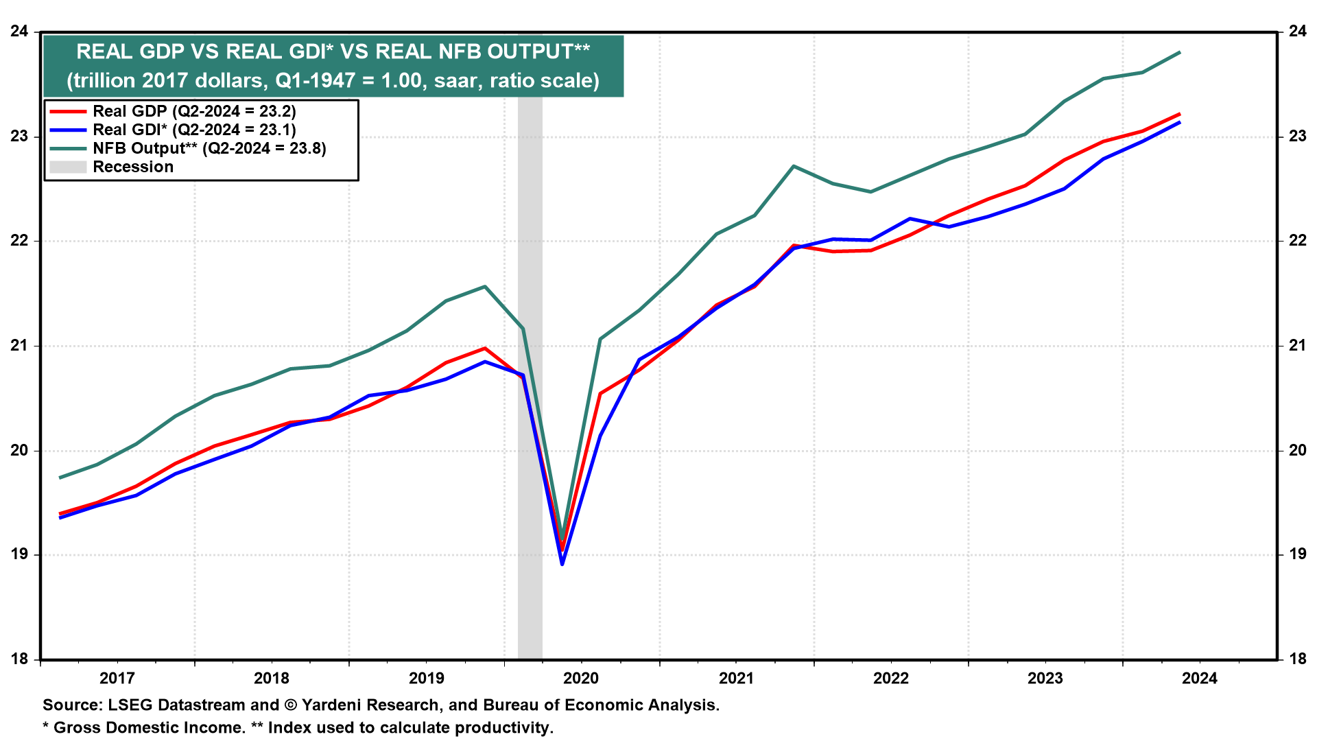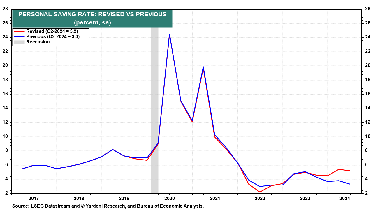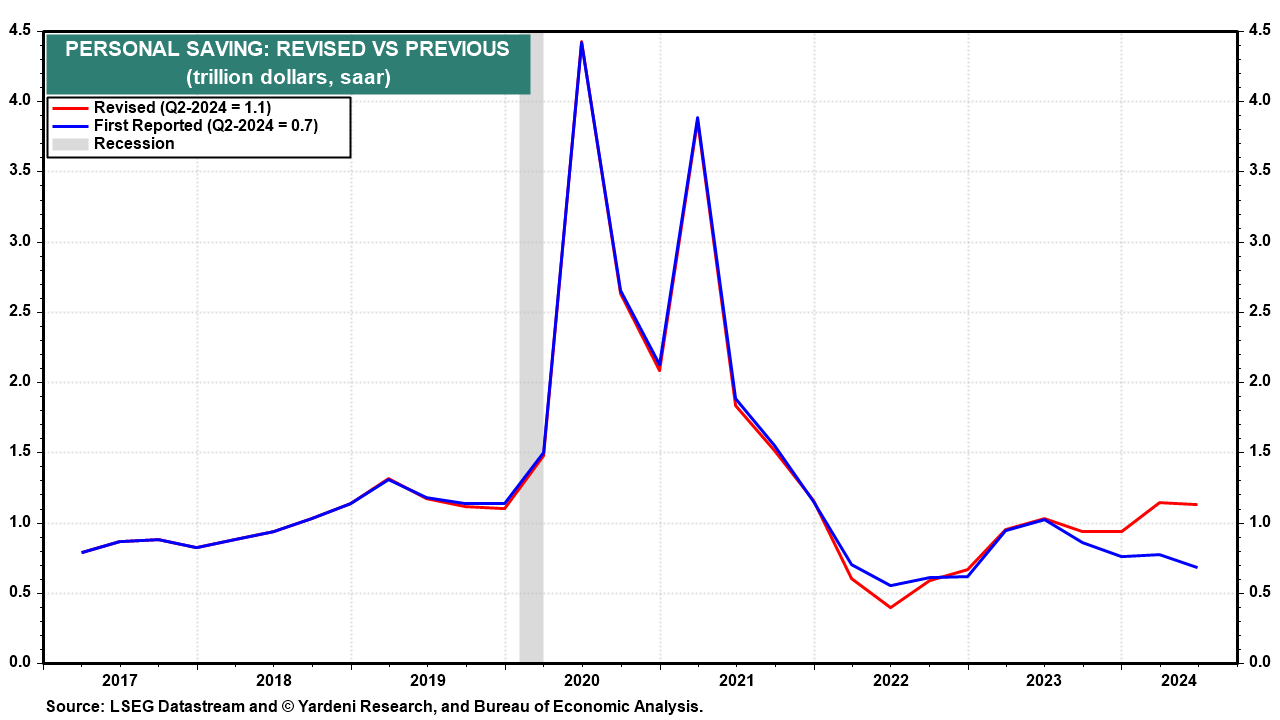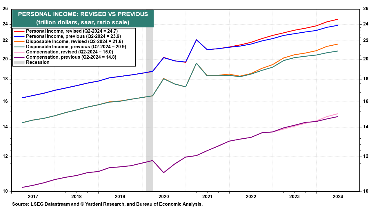 This is a big deal for our productivity-led Roaring 2020s story. The upward revision in real GDP will likely be followed by a similar revision in real nonfarm business output, which is used to calculate productivity (chart). So the strong 2.7% y/y increase in productivity during Q2-2024 is likely to be revised higher.