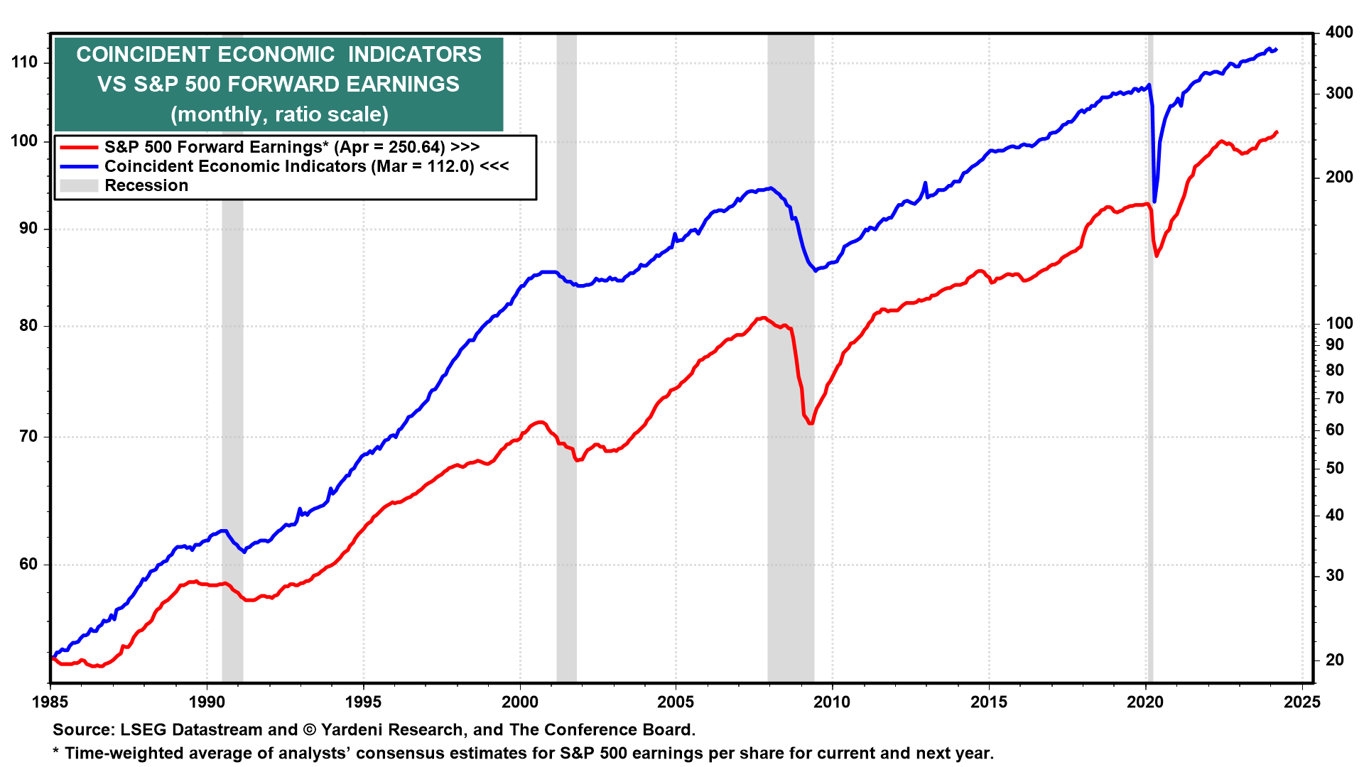 (4) CEI & LEI. S&P 500 forward earnings rose to a new all-time high in April (chart). This series tends to be highly correlated with the Index of Coincident Economic Indicators (CEI) and a very good leading indicator of actual S&P 500 operating earnings per share. April's CEI (Fri) probably edged up to another record high. April's Index of Leading Economic Indicators might confirm that this series is bottoming.